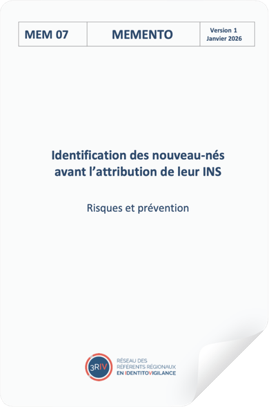 Pour aller plus loin, le 3RIV (le Réseau des Référents Régionaux en identitovigilance) en collaboration avec RPNA vous propose un mémento visant à rappeler les principaux risques et mesures de prévention concernant l’identification du nouveau-né en maternité (cf.page 38 du livret CCECQA Partic) avant l’attribution de son identité nationale de santé.